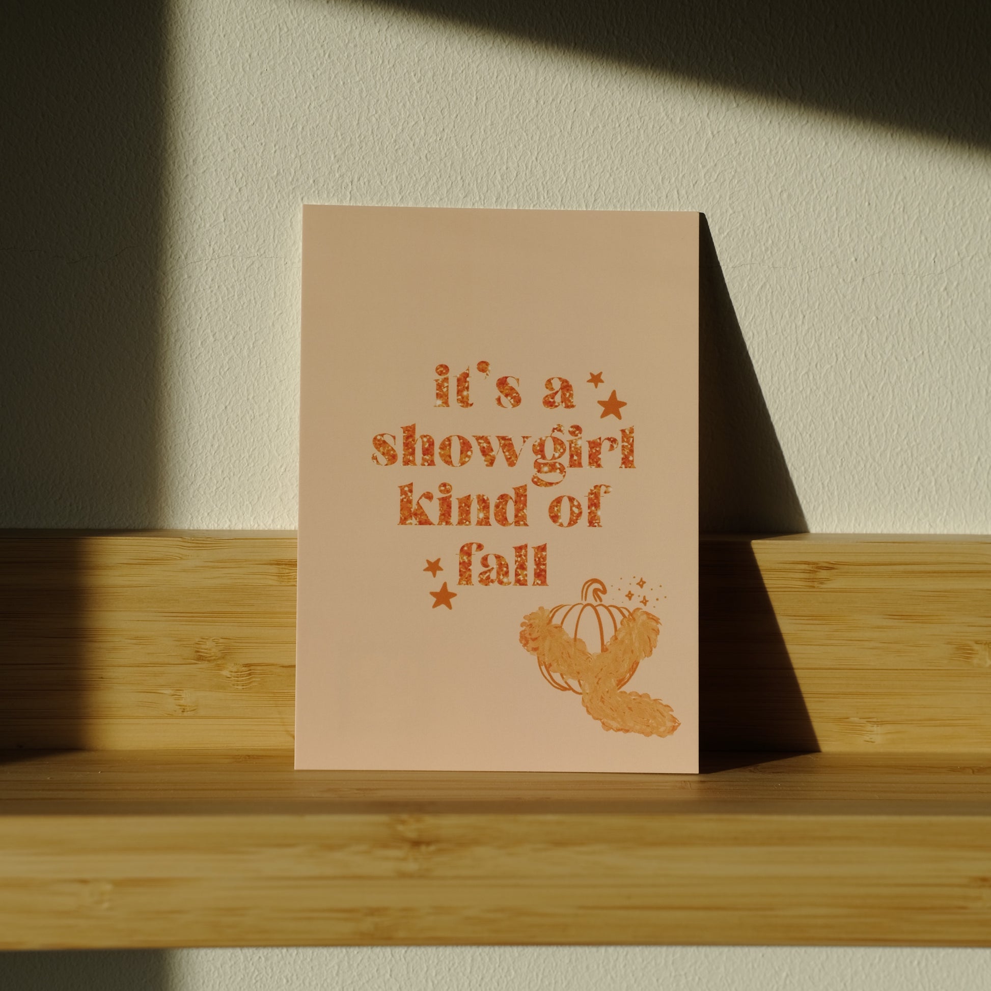 Taylor Swift bringt ein neues Album raus: THE LIFE OF A SHOWGIRL! Ahhhh - ich glaub alle Swifties auf dieser Welt machen seit der Ankündigung ständig Freudensprünge in Gedanken. Da es perfekt in den Herbst passt, ist das die schönste Kombination, die ich mir vorstellen kann. Auf der Postkarte findest du einen Kürbis, der sich in eine Federboa hüllt und den passenden Spruch "it's a showgirl kind of fall". Lieben wir!